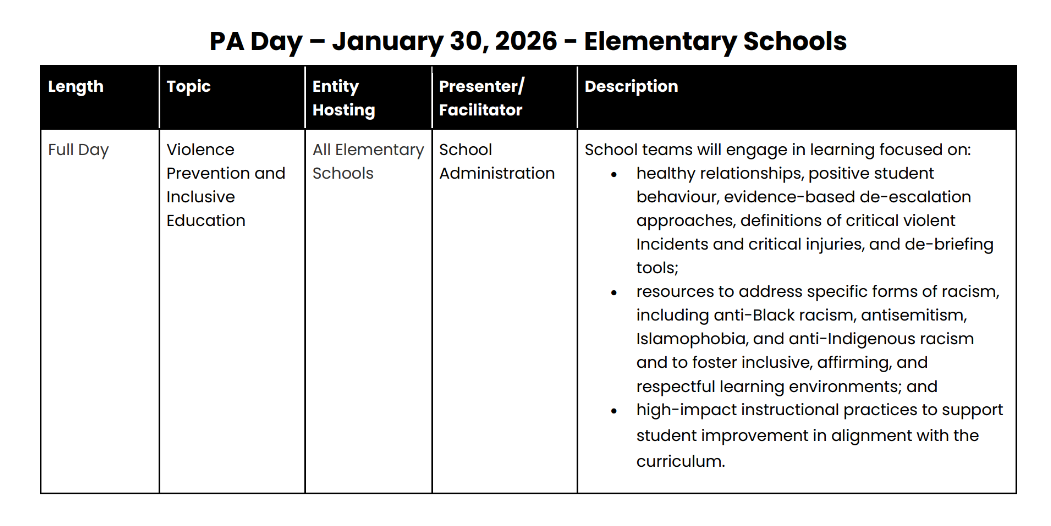 - Jan 30 - PA Day - No School for Students