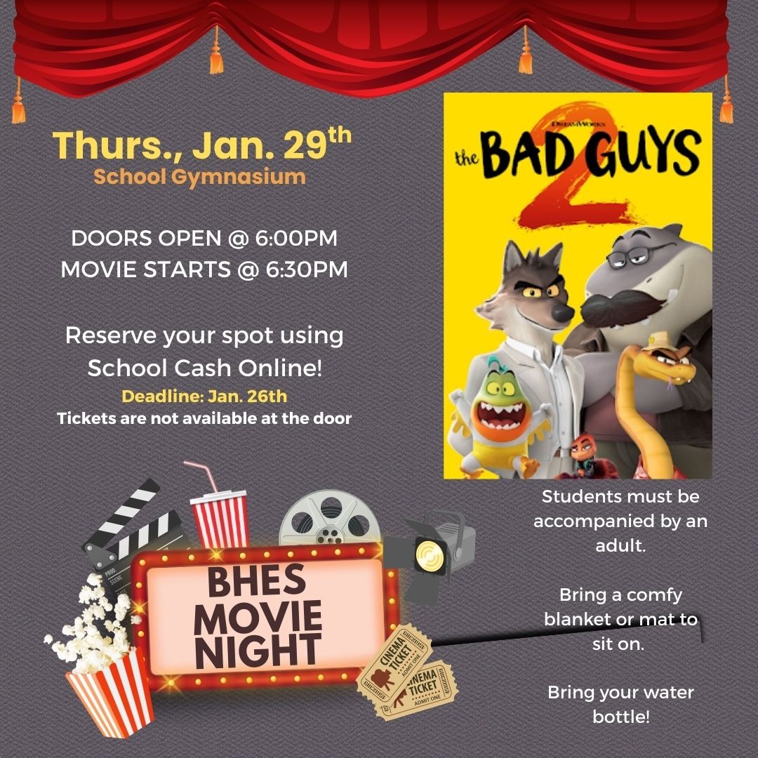 BHES School Council's Family Movie Night is next week! Have you signed up yet?